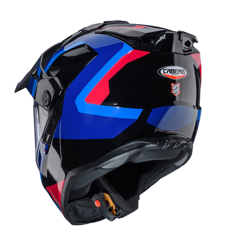TANAMI is Caberg's full-face on-off road helmet, available in two shell sizes made of fiber glass. An innovative ventilation system with quick release magnets that allows to convert the helmet from on to off-road and vice versa in a few seconds. Moreover it’s possible to mount a hydration tube inside the chin guard. Equipped with the CABERG SOS MEDICAL ID technology, it offers comfort and safety for every adventure.
