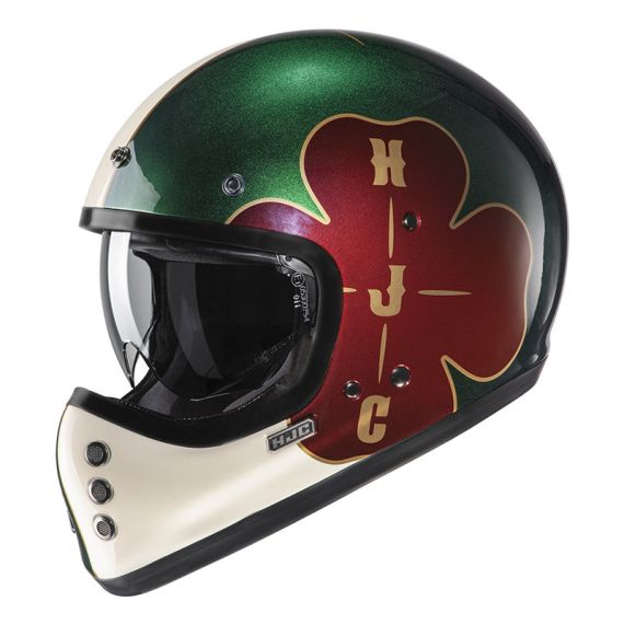 Classic styling with a modern twist, the HJC V60 adds a brand-new category of helmets to our off-road lineup for 2022. Inspired by the original FG-01 from the 1980s, the V60 goes beyond the vintage look with new-age features such as a lightweight fiberglass shell, a large inner IS-10 sun visor, built-in speaker pockets, removable and washable interior, and emergency release cheek pads for extra safety. The V60 also includes a removable 3-snap peak visor to complete the retro look.