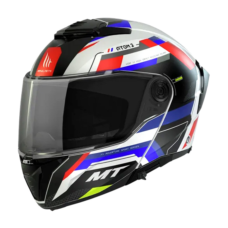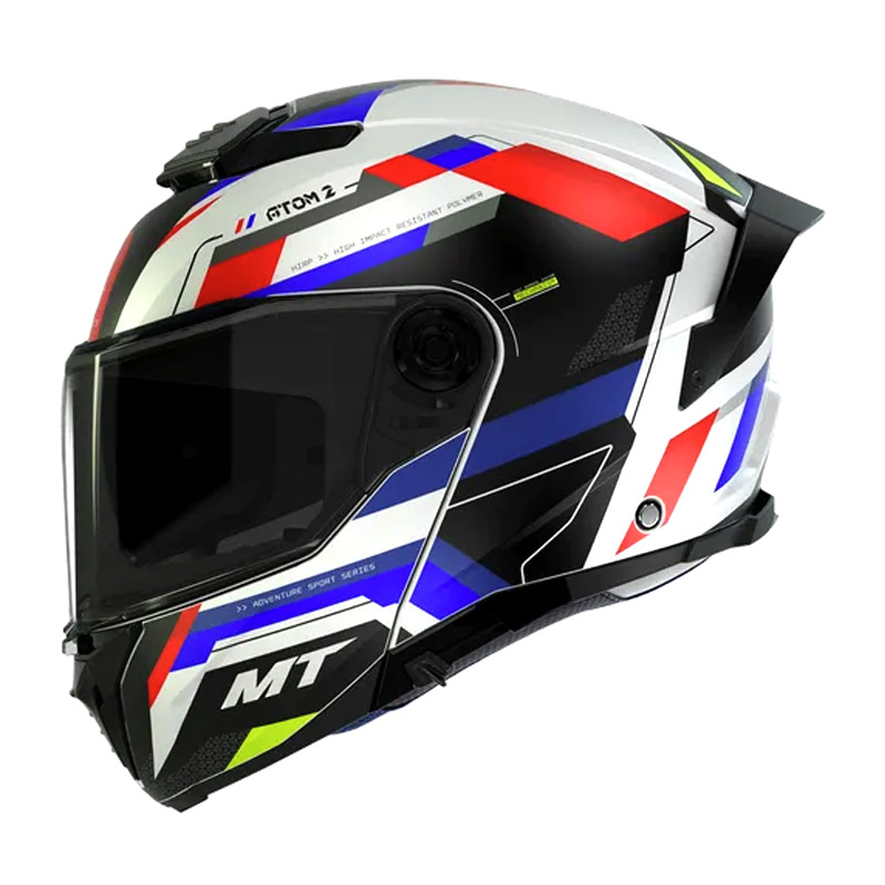 MT Atom 2 SV is a modular helmet with an aerodynamic design perfect for touring use. Made of HIRP, a very resistant and durable material. It has a large screen with anti-scratch treatment that offers a wide field of vision, compatible with Pinlock® and anti-fog systems (not included). Sun visor that guarantees correct protection against UV rays. Ventilation system with MT-AFCS technology that guarantees correct air flow.