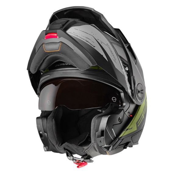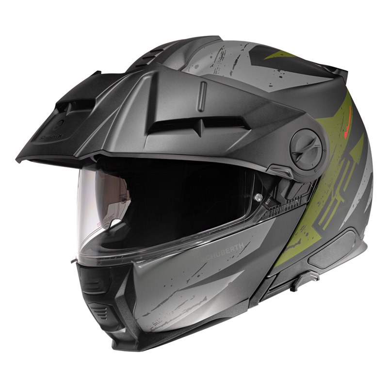 The SCHUBERTH E2 is the second generation of SCHUBERTH's adventure helmets and the second helmet of SCHUBERTH's range featuring the P/J double homologation and meeting the new ECE 22.06 standard. The SCHUBERTH E2 is the perfect mix between the comfort of the famous "C" series and the aggressive look and feel of an offroad helmet. The new E2 also integrates all the latest SCHUBERTH standards in terms of safety, aerodynamics and aeroacoustics performance.
