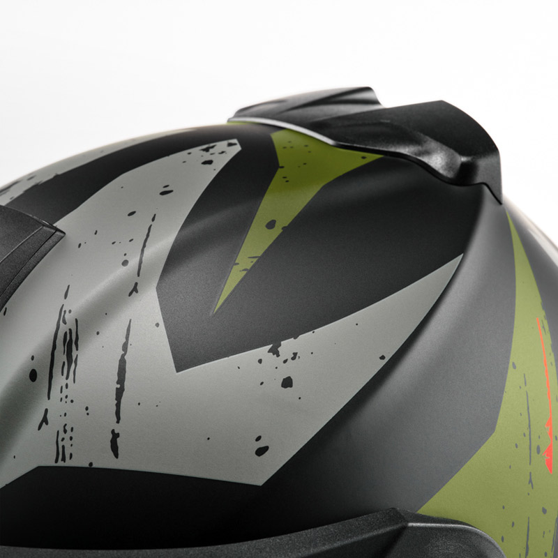 - Double chin air intake to improve ventilation , featuring exchangeable chin part filter. Increased back spoiler for improve air extraction.