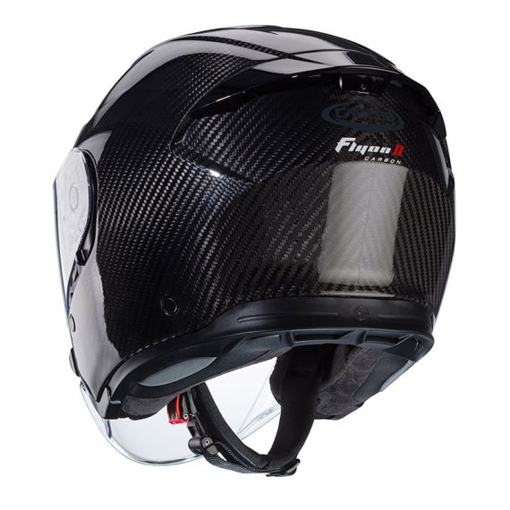 Flyon-II is available in two shell sizes in order to offer the best fitting proportion between the shell volume and the motorcyclist’s head. The outer shell is made of composite fiber, but there is the Flyon-II CARBON version as well with a glossy carbon fiber shell.