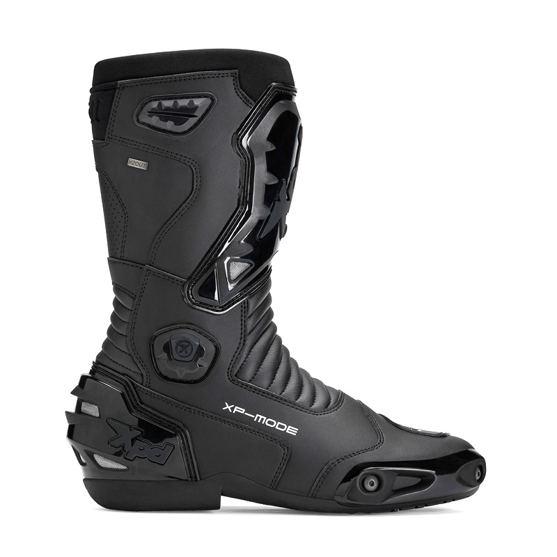 XPD XP-Mode H2Out® Boots. Racing boots with a sporty and aggressive aesthetic that provide a high level of comfort and excellent performance on the track, even on rainy days. Made of highly abrasion-resistant microfiber and suede leather inserts with an H2Out® membrane for greater breathability and waterproofing.