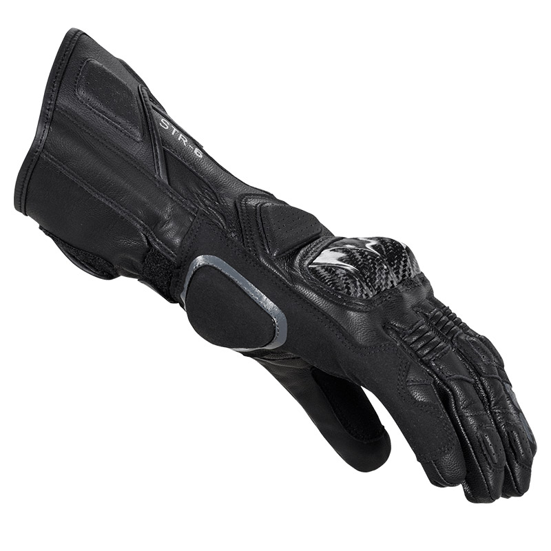 SPIDI Str-6 represents the best balance between racing-oriented performance and comfort. Carbon fiber knuckles with dual-density inner reinforcement guarantee a high levels of shock absorption and abrasion resistance, while multi-layer leather inserts on palm and back are strategically positioned in most crucial areas. Double Velcro closure gives riders a wide range of adjustment. Str-6 gloves are EN13594:2015 KP certified