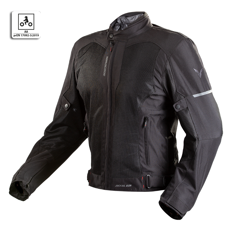 NORDCODE JACKAL AIR jacket comes with CE certification as protective clothing for motorcycle use certified to the EN 17092:2019 Class AA.