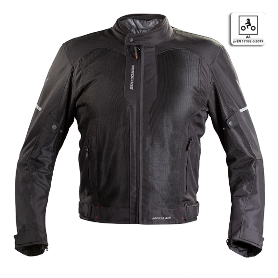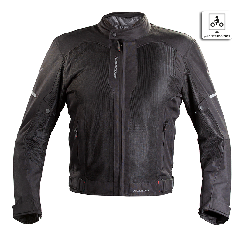 NORDCODE JACKAL AIR jacket comes with CE certification as protective clothing for motorcycle use certified to the EN 17092:2019 Class AA.