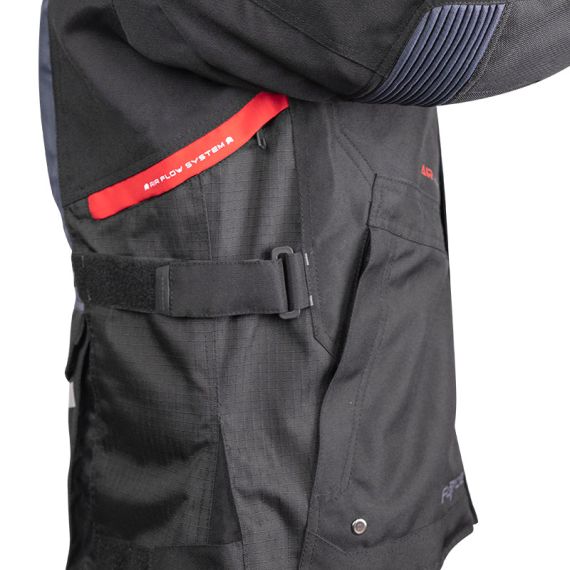 Force is a waterproof winter motorcycle jacket with a removable thermal liner. The outer layer of the jacket is made of stretch polyester fabric, with excellent abrasion resistance, and ripstop on shoulders and sides. Air vents with zipper closure on the front offer significant airflow when needed. The adjustable straps ensure perfect fitting. Safety is provided by removable CE1621-1 shoulder and elbow protectors and a removable back protector.