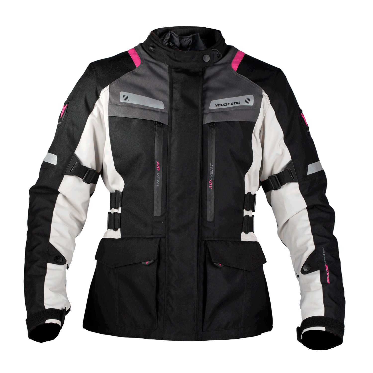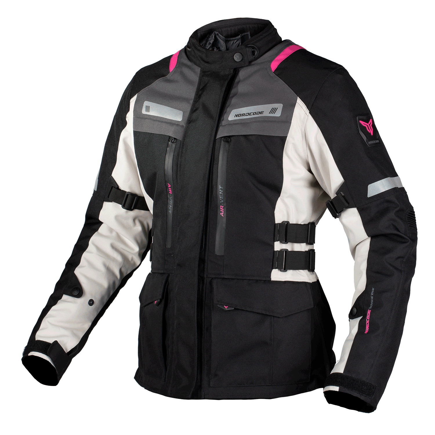 RHYNO Jacket, developed by NORDCODE to be an advanced modern motorcycle jacket with CE certification to the demanding prEN 17092-3:2019 Class AA standard. It features a removable thermal liner and a membrane that makes it waterproof, windproof, and breathable.