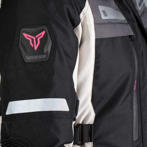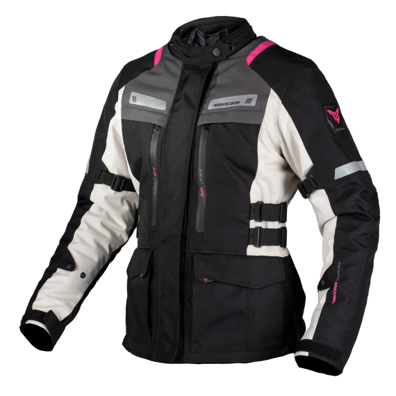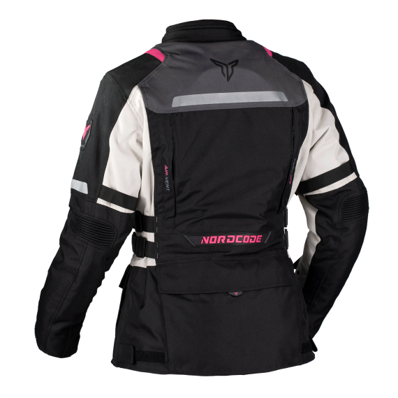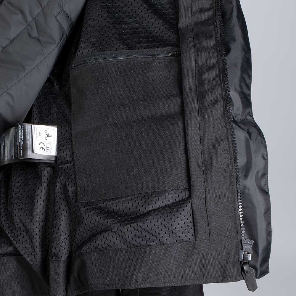 The outer layer of the jacket is a high strength fabric with exelent abrassion resestance. The zippered air panels in the front offers significant airflow when needed. It has double adjustable waist straps and chest and arms regulators, to ensure a perfectly tailored fit. Safety is provided by the removable CE EN1621-1 certified protectors on shoulders and elbows and a removable CE back protector.