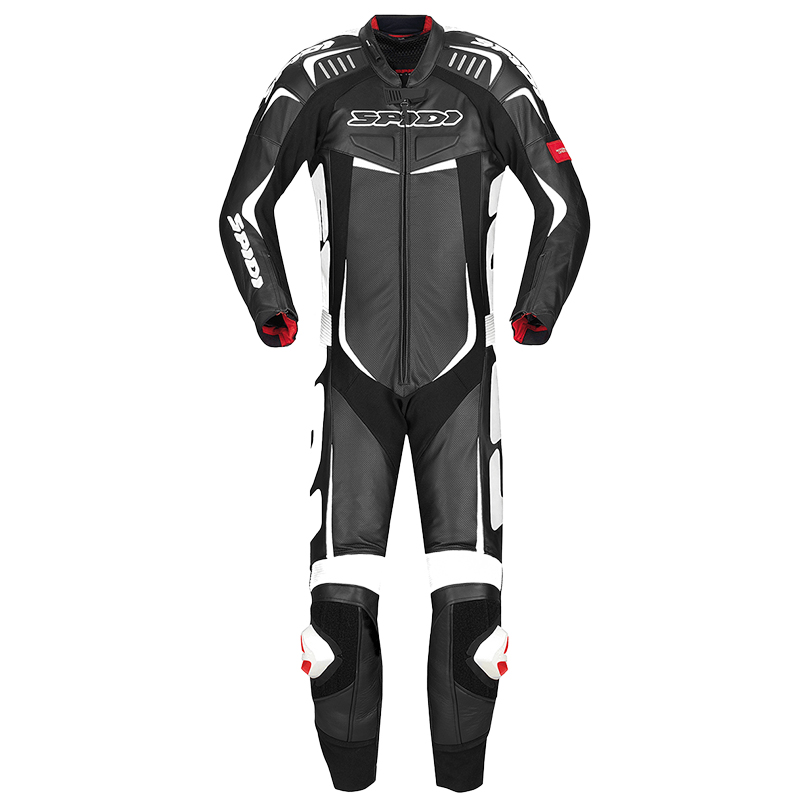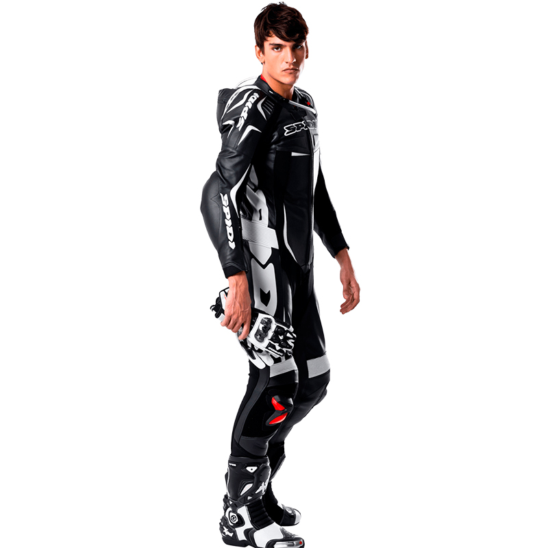 With many innovation tested by MotoGP riders such as Scott Redding and Hector Barbera, these leathers are made of 1.2/1.3mm thick cowhide tanned in the Vicenza's leather district, with advanced fitting thanks to its balance of stretch materials, neoprene inserts and Multitech/Biomechanic/Forcetech protectors, all developed in Spidi's Safety Lab.