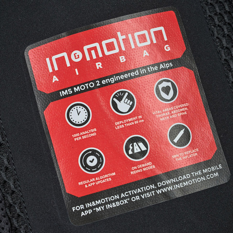 - Rear access zips to the In&box, the In&motion airbag operating system