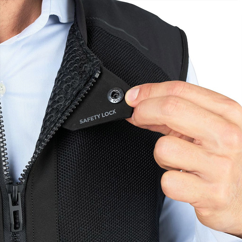 Airscud Flex is a CE airbag vest, with integrated In&motion technology, which anticipates all possible falls, complete with safety functions and services which update and improve every day. Thanks to its CE Class C certification, Airscud Flex can be worn not only under but also over any jacket or outfit. Its always-on safety and super versatility make it perfect for those who use two wheels every day, especially in the city, where danger is always waiting.
